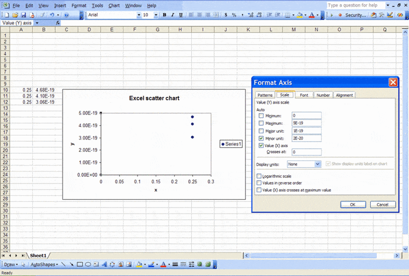 Excel 2007 scatter plot data labels. Excel 2007 : Labels for Data Points on a Scatter Chart It offers me three options for labels: use the first number, use the second number, or use the "series name". If I try using the series name and specify the third column as my series name, it puts ALL of the names next to each data point! Add or remove data labels in a chart - support.microsoft.com In the upper right corner, next to the chart, click Add Chart Element > Data Labels. To change the location, click the arrow, and choose an option. If you want to show your data label inside a text bubble shape, click Data Callout. To make data labels easier to read, you can move them inside the data points or even outside of the chart. Custom Labels in Excel's X-Y Scatter Plots--Phew! - Blogger February 02, 2007. Custom Labels in Excel's X-Y Scatter Plots--Phew! Courtesy of ISB MBA student Prem Pasupathy (many thanks Prem! ... Excel lets you apply data labels to each point in a series, with options to use the Y values or the X labels in the data labels (pie charts allow a few other options as well). You can manually change each label ... How to use a macro to add labels to data points in an xy scatter chart ... In Microsoft Office Excel 2007, follow these steps: Click the Insert tab, click Scatter in the Charts group, and then select a type. On the Design tab, click Move Chart in the Location group, click New sheet , and then click OK. Press ALT+F11 to start the Visual Basic Editor. On the Insert menu, click Module.