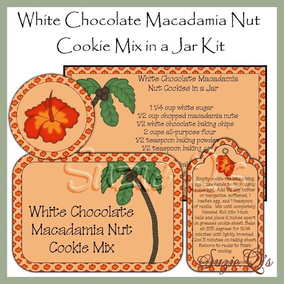 Items similar to Make your own White Chocolate Macadamia Nut Cookie Mix in a Jar - Labels, Tag ...